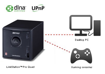 Buffalo’s LinkStation Pro Quad is the ideal solution to keep important files safe! Stream your favourite music and videos directly from the LinkStation Pro Quad to a computer or Logitech Squeezebox, PS3®,Xbox 360® or network attached DLNA or UPnP media player or Buffalo LinkTheater.