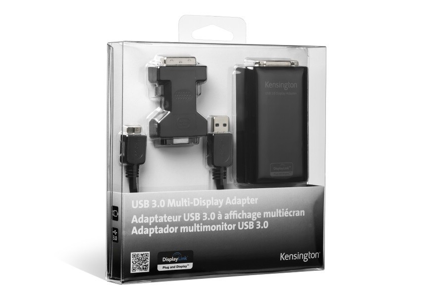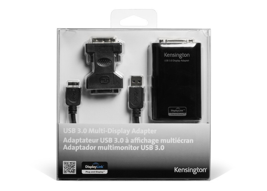 The Kensington Multi-Display Adapter allows you to expand your viewing options and add a secondary screen to your laptop, Ultrabook or Windows 8 tablet. It allows a secondary display to increase your productivity or give you the confidence when presenting that you can connect to any projector or TV screen via a single USB. For instant connectivity and superb picture quality between laptop and additional display, the Kensington Universal Multi-Display Adapter uses a USB3.0 SuperSpeed connection. Research has shown that using multiple monitors can increase productivity by up to 50%. Common tasks such as copying and pasting are greatly improved with fewer errors thanks to not having to juggle or tab through your open windows within one display. The Kensington Multi-Display Adapter makes adding that extra screen easy. Simply connect one end to the monitor and the other to your laptop or Ultrabook USB port. The Universal Multi-Display Adapter can also be used on projectors or HDTV screens using the included DVI-VGA adapter, allowing display on any device with up to 2048x1152 pixel resolution or 1080p for video playback. Using USB means it’s universally compatible with any brand and model, including Ultrabooks. All you need is one USB to add another display option.