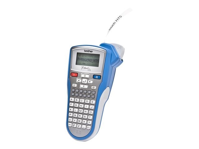Brother PT-H75S. Print technology: Thermal transfer, Maximum resolution: 180 x 180 DPI, Print speed: 10 mm/sec. Display: LCD. Memory capacity: 80 characters. Tape type: TZe, Tape cutting: Manual. Colour of product: Blue, White, Keyboard layout: ABC